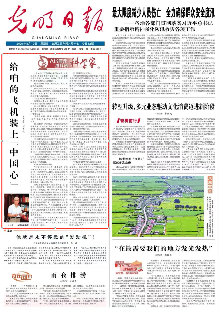 ??“世界航空發動機大踏步發展,并沒有因為我們的追趕而放慢腳步‘等一等’。要用十幾年的時間完成人家幾十年、近百年做過的事,我們要補的課很多,不能亦步亦趨。”在尹澤勇心中,“真正的考驗”,是發動機長期穩定可靠。